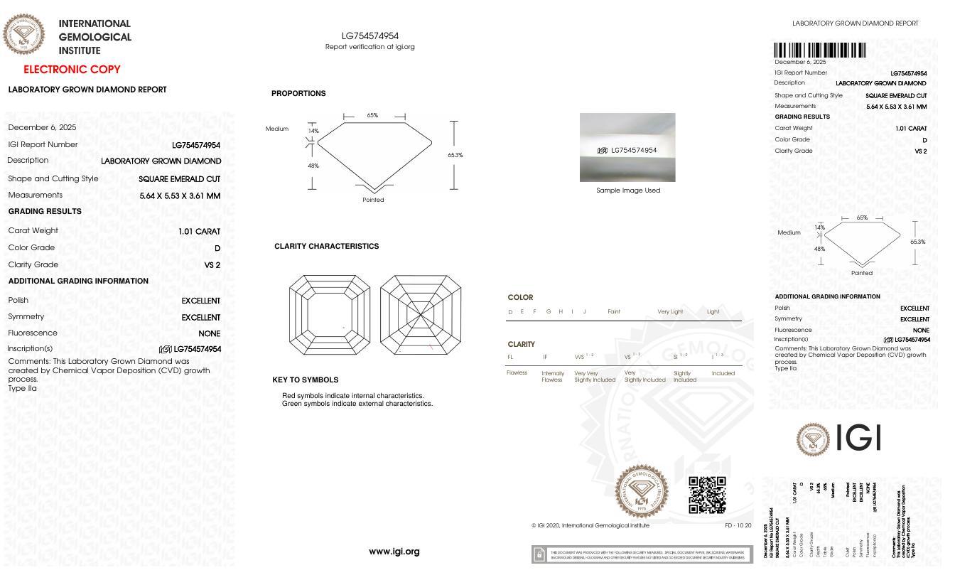 One (1) Asscher Cut Laboratory Grown Diamond
