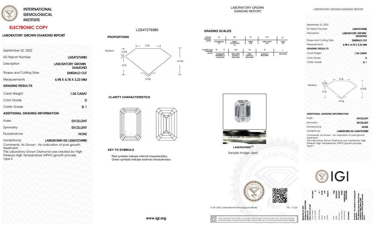 This piece includes paperwork from the International Gemological Institute (IGI).