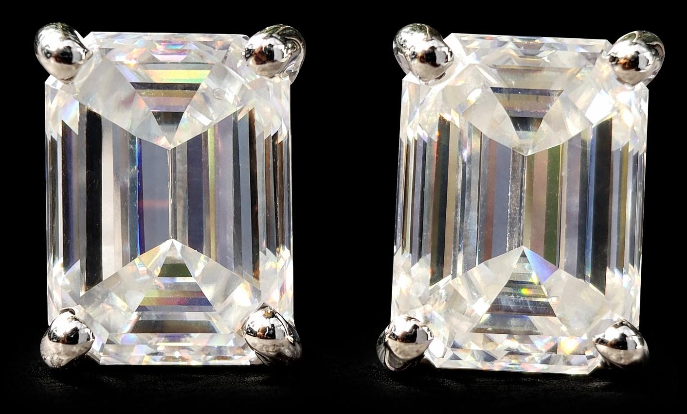 One Pair Emerald Cut Diamond Stud Earrings. Set In Sterling Silver Mountings.