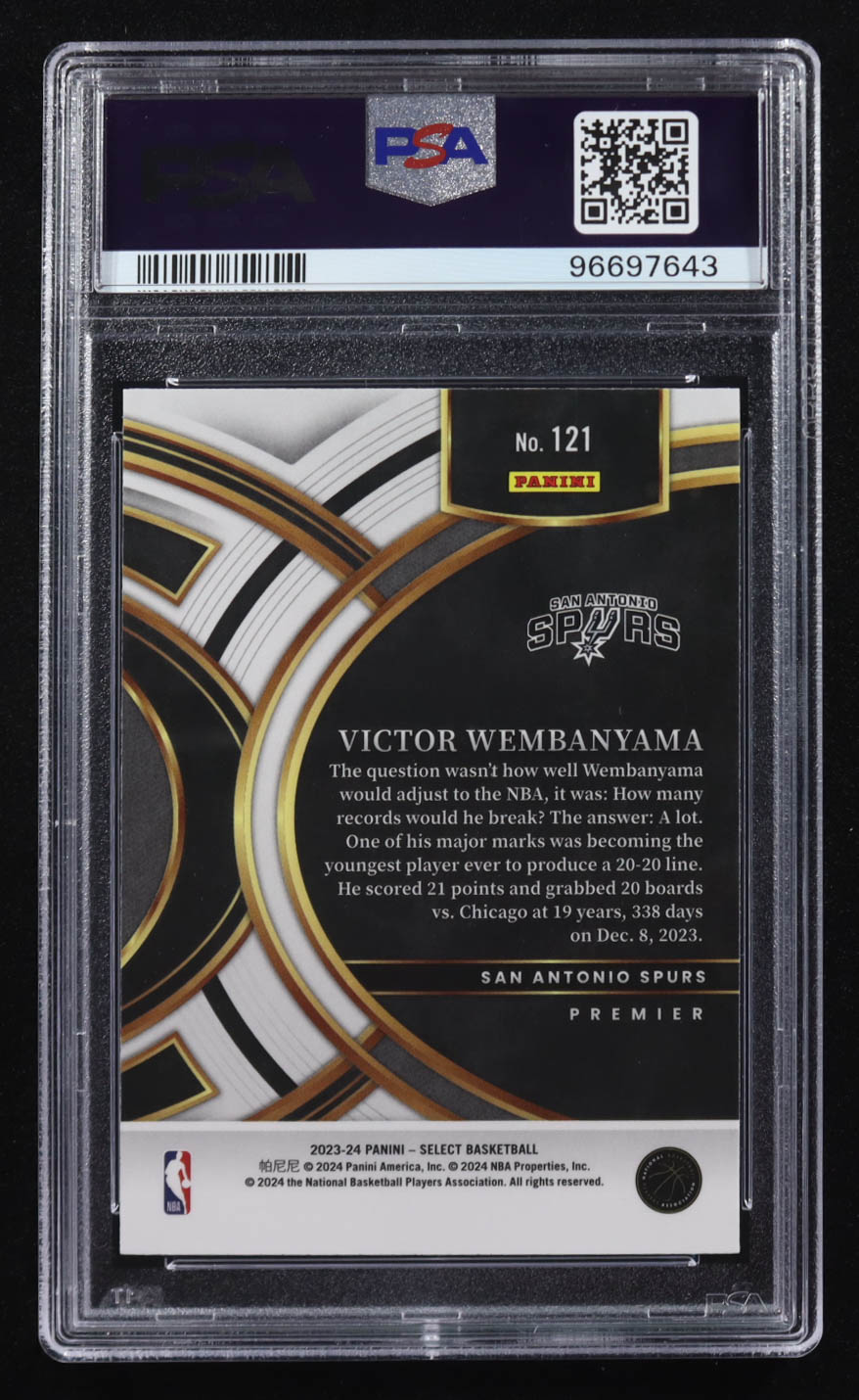 Victor Wembanyama 2023-24 Panini Select #121 RC (PSA 10)