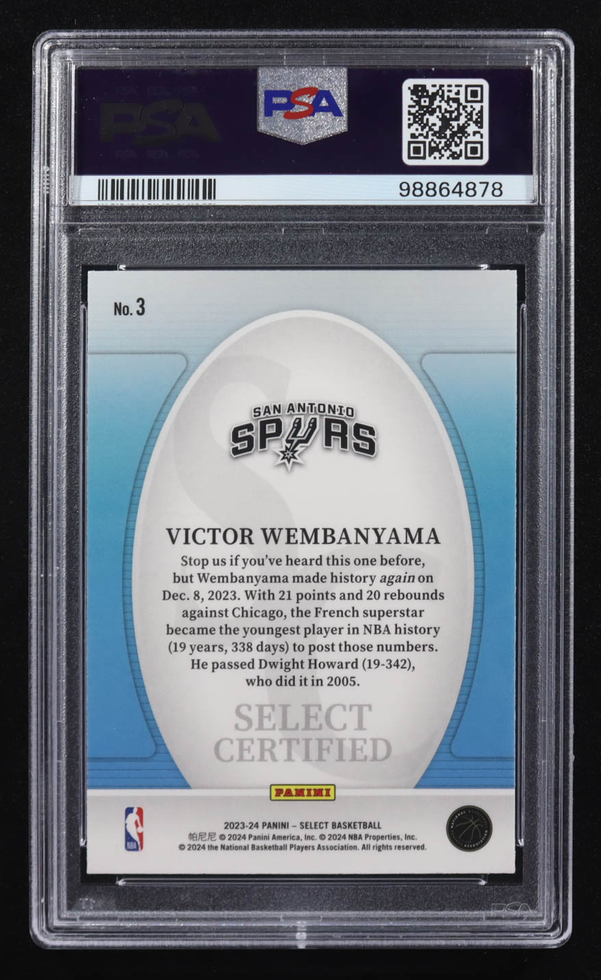 Victor Wembanyama 2023-24 Panini Select Certified #3 RC (PSA 10)