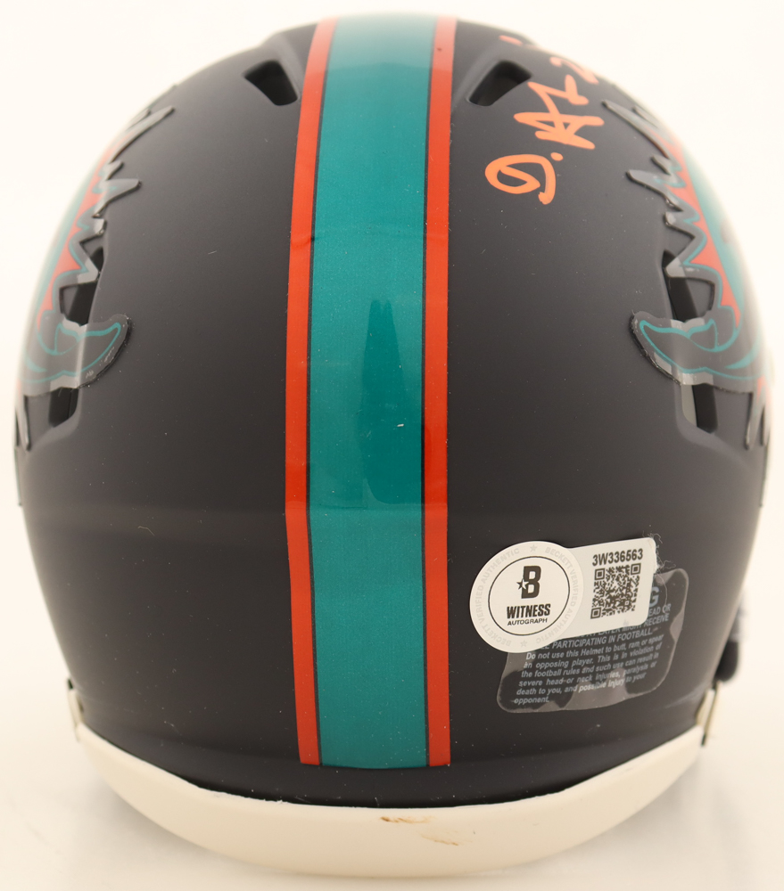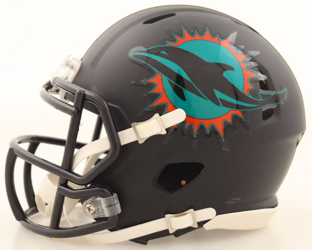 Riddell Miami Dolphins Rivalries Alternate Speed mini helmet. Hand-signed by De'Von Achane.