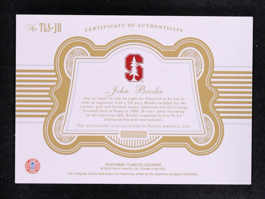 John Brodie 2018 Panini Flawless Collegiate Team Logo Signatures #36 #21/25