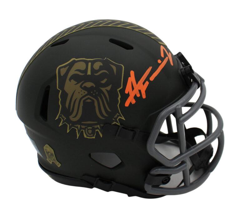 Harold Fannin Signed Browns Salute to Service Alternate Speed Mini Helmet (JSA)