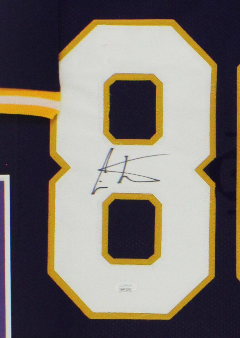 Custom frame measures 34" x 42" in size and features a jersey that has been hand-signed by Cris Carter (HOF).