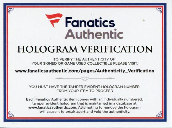 The autograph includes an official Fanatics hologram for authenticity purposes.