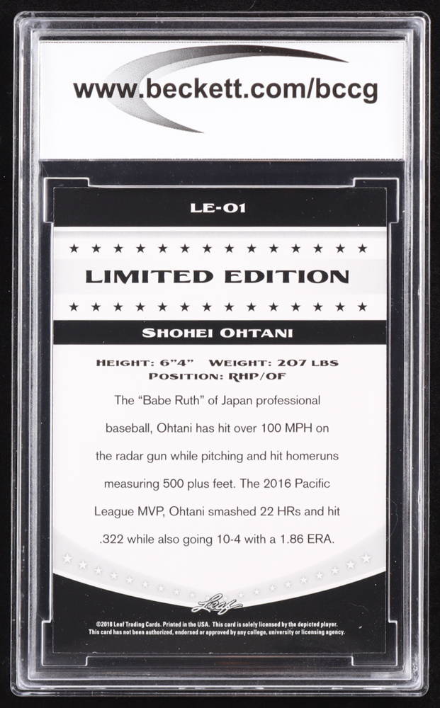 Shohei Ohtani 2018 Leaf Ohtani Limited Edition #LE01 RC (BCCG 10)