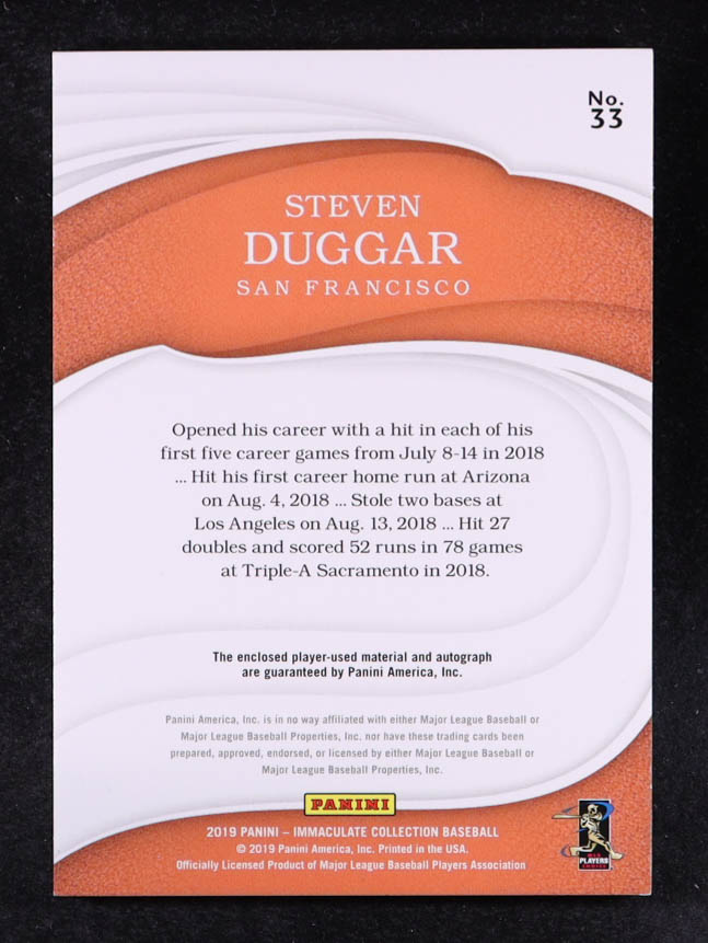 Steven Duggar 2019 Immaculate Collection #33 #90/99 JSY AU RC