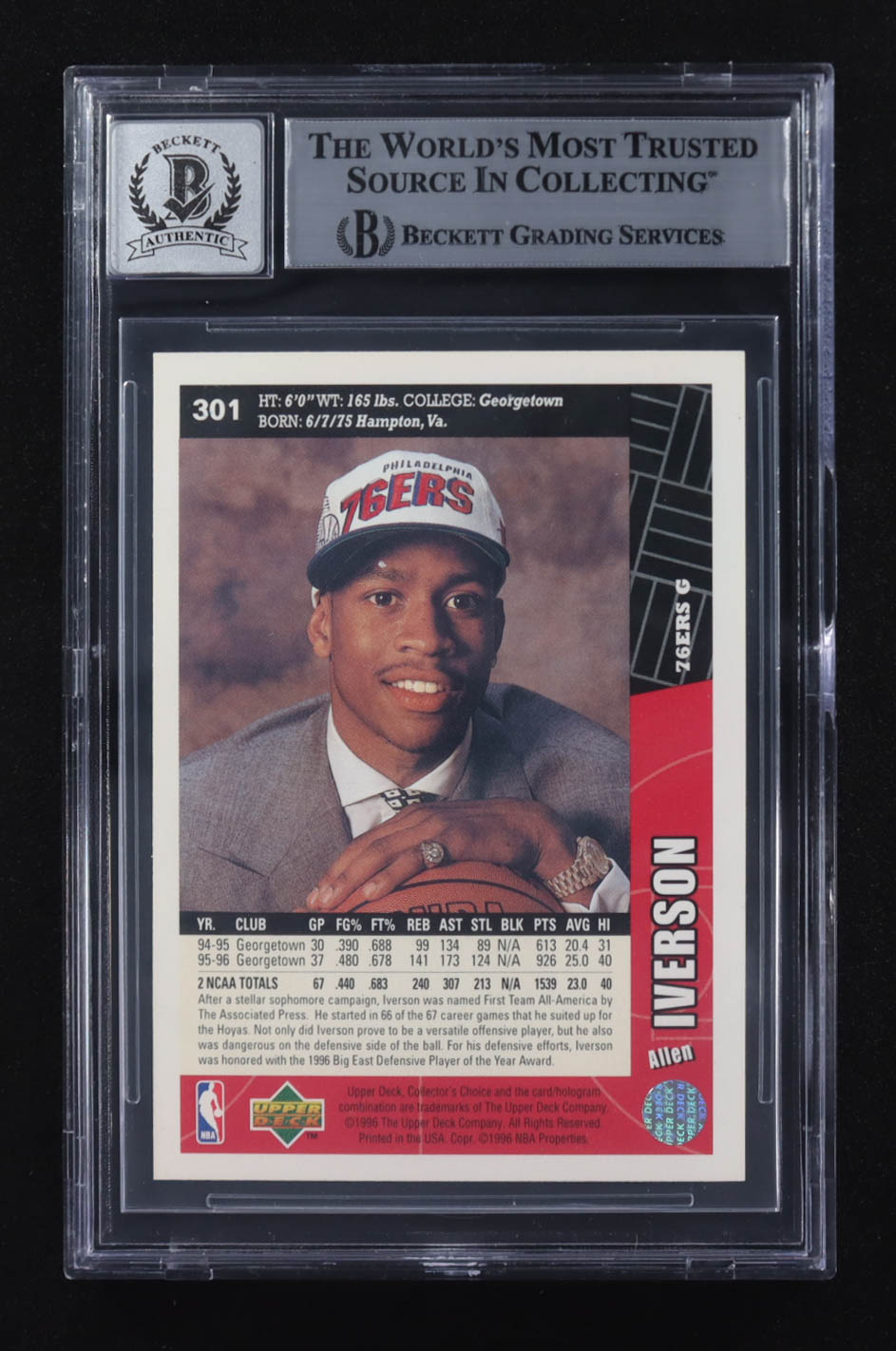 Allen Iverson Signed 1996-97 Collector's Choice #301 RC (BGS Encapsulated)