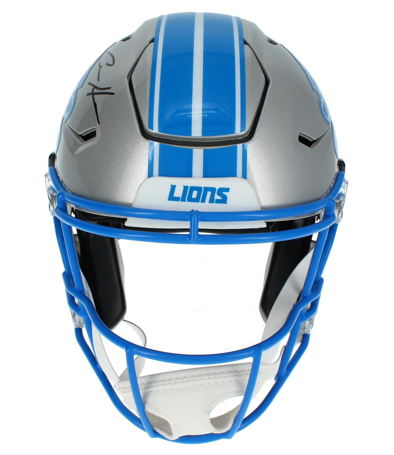 Riddell Detroit Lions full-size authentic on-field speedflex helmet. Hand-signed by Aidan Hutchinson.