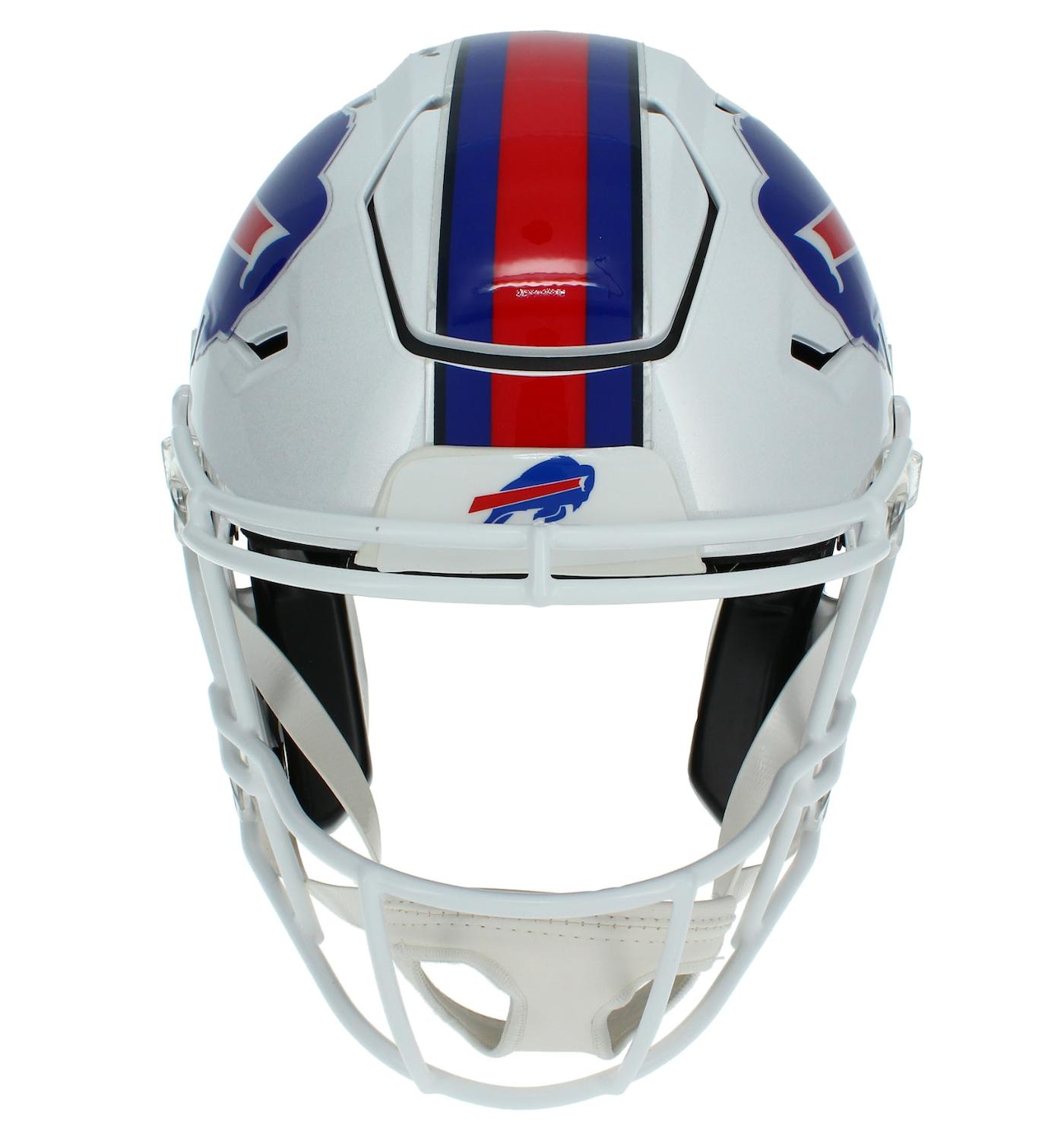 Riddell Buffalo Bills full-size authentic on-field speedflex helmet. Hand-signed and inscribed by Josh Allen.