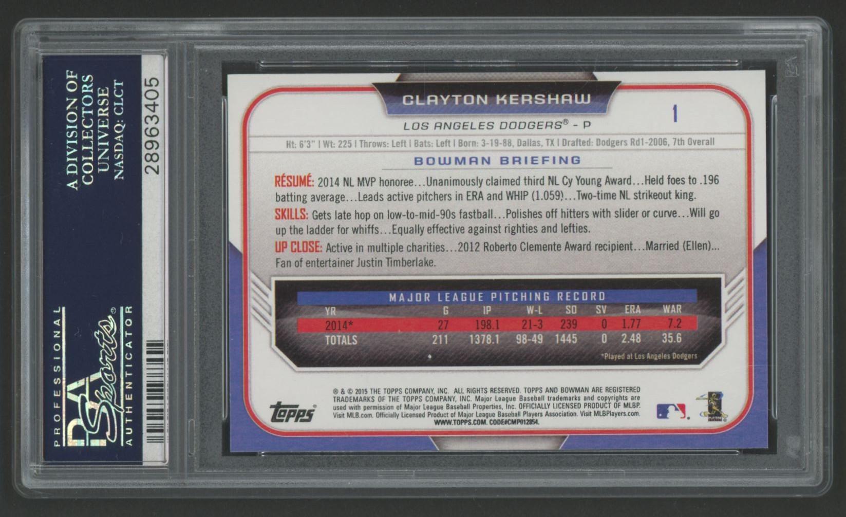 Clayton Kershaw 2015 Bowman #1 (PSA 10)