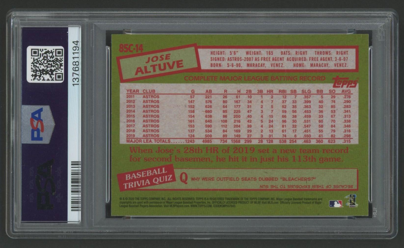 Jose Altuve 2020 Topps Silver Pack #14 (PSA 10)