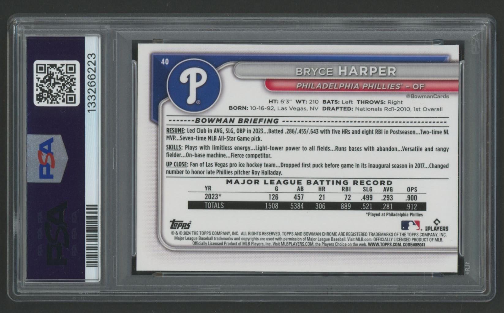 Bryce Harper 2024 Bowman Chrome #40 (PSA 10)