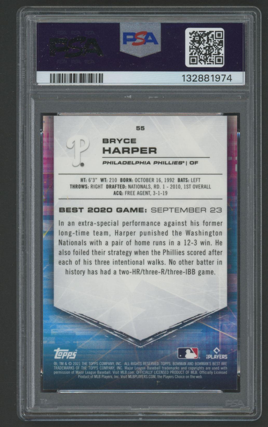 Bryce Harper 2021 Bowman's Best Purple Refractor #55 #15/250 (PSA 10)