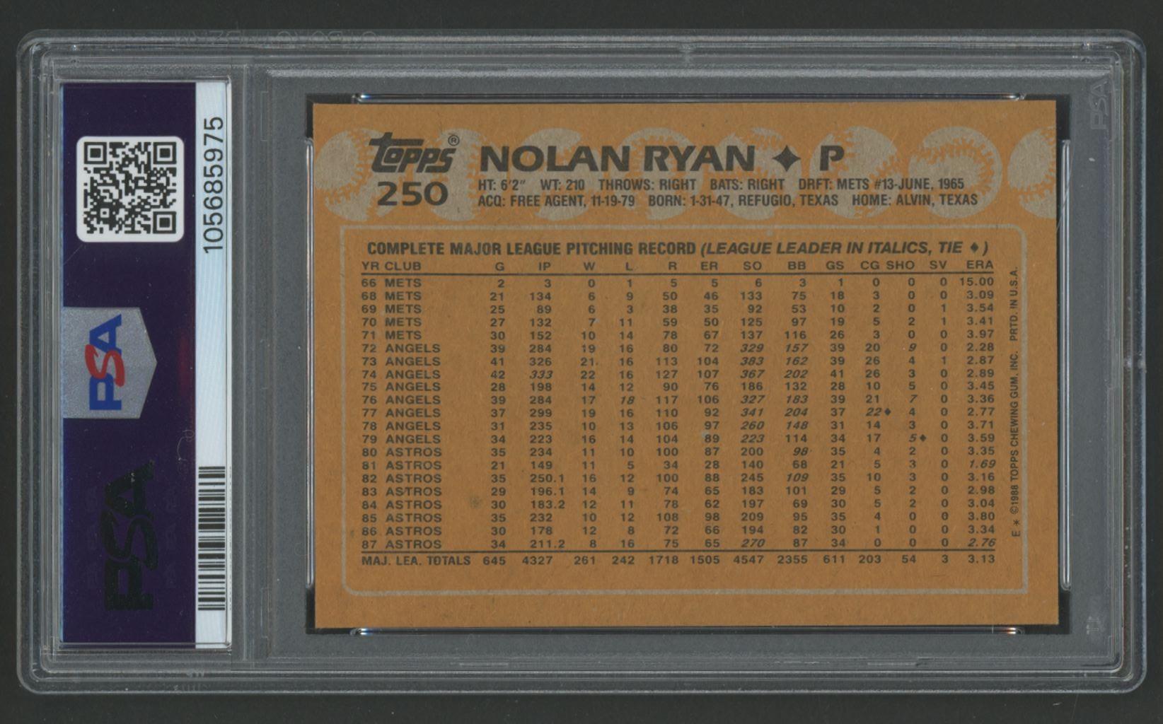 Nolan Ryan 1988 Topps #250 (PSA 9)