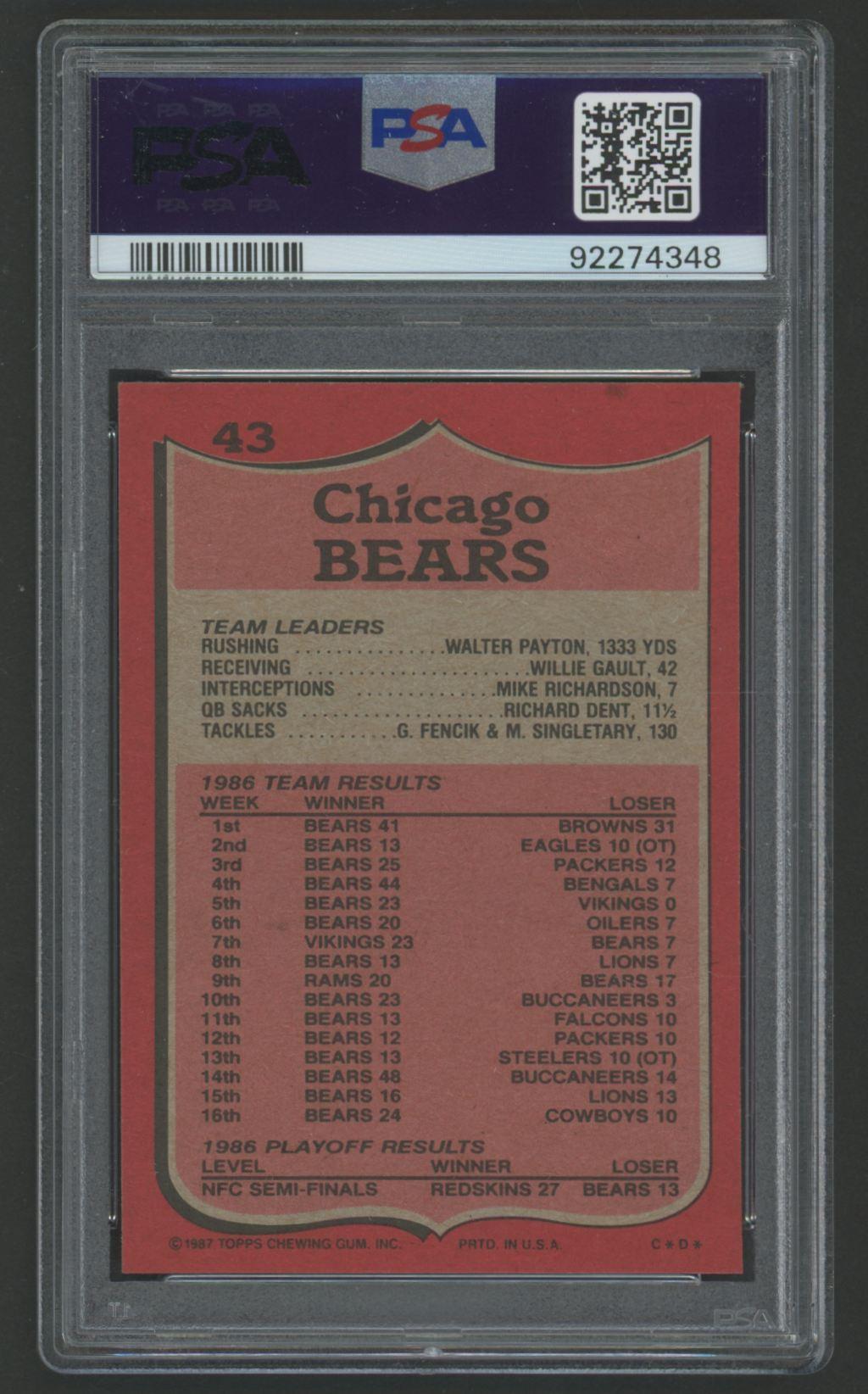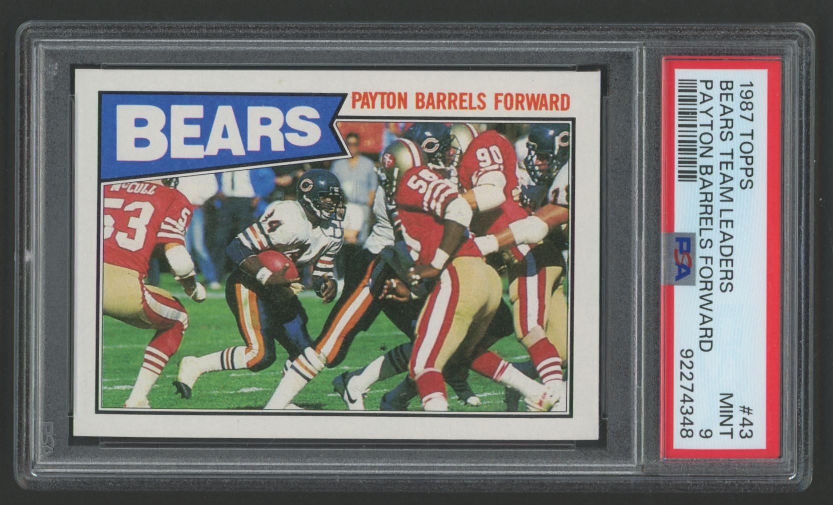 Walter Payton 1987 Topps Payton Barrels Forward #43 (PSA 9)