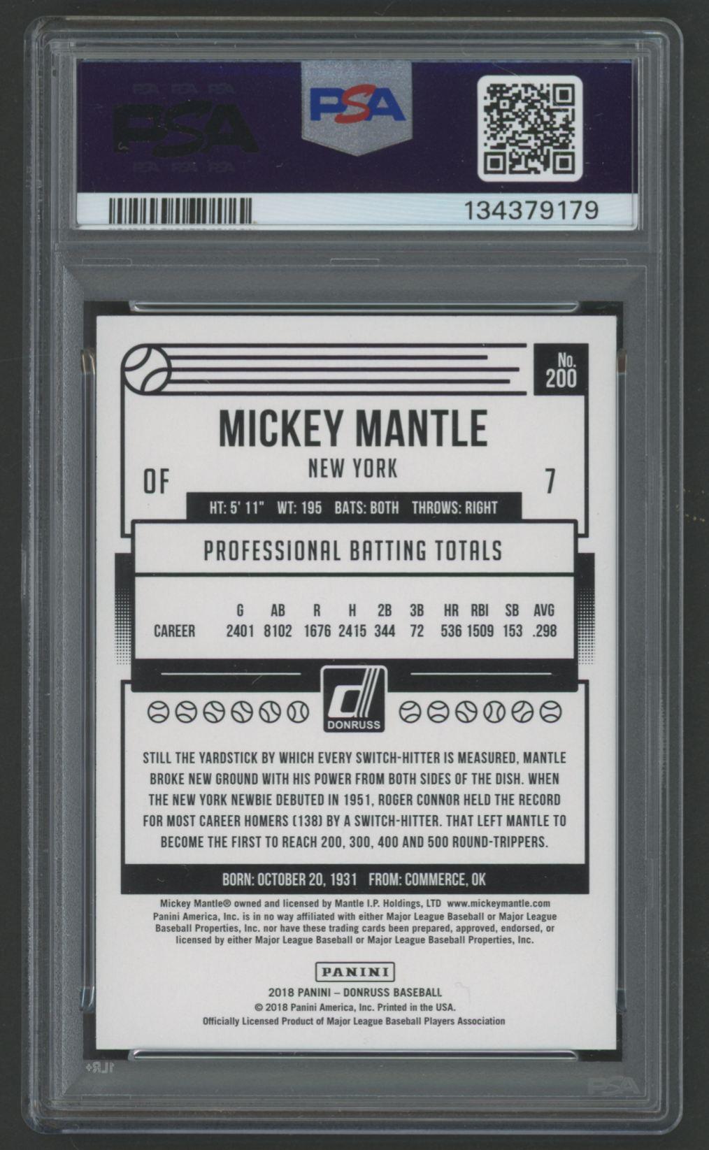 Mickey Mantle 2018 Donruss #200 (PSA 10)