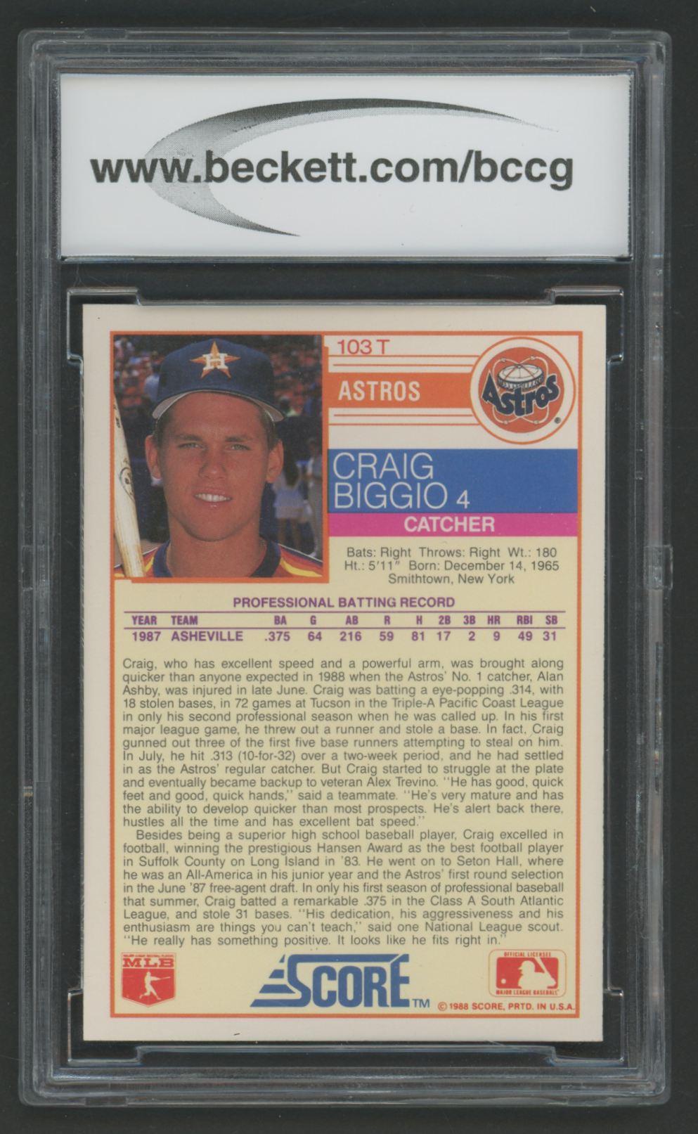 Craig Biggio 1988 Score Rookie/Traded #103T XRC (BCCG 10)