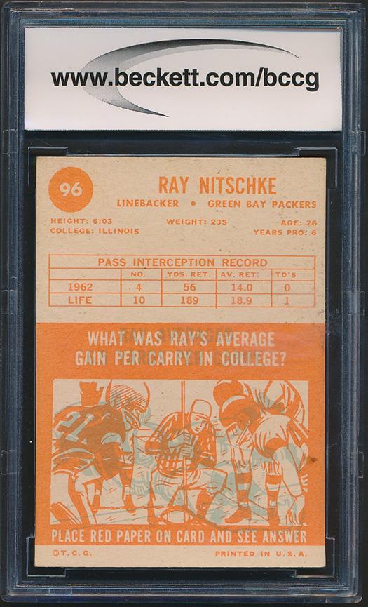 Ray Nitschke 1963 Topps #96 RC (BCCG 8)