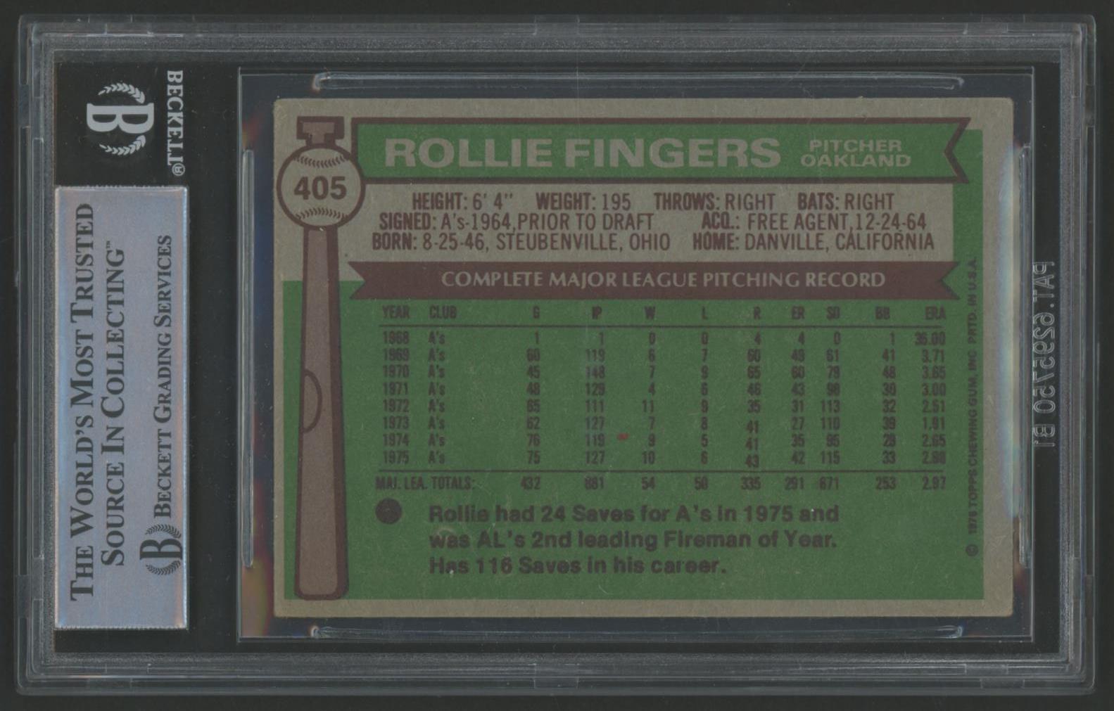 Rollie Fingers Signed 1976 Topps #405 (BGS)