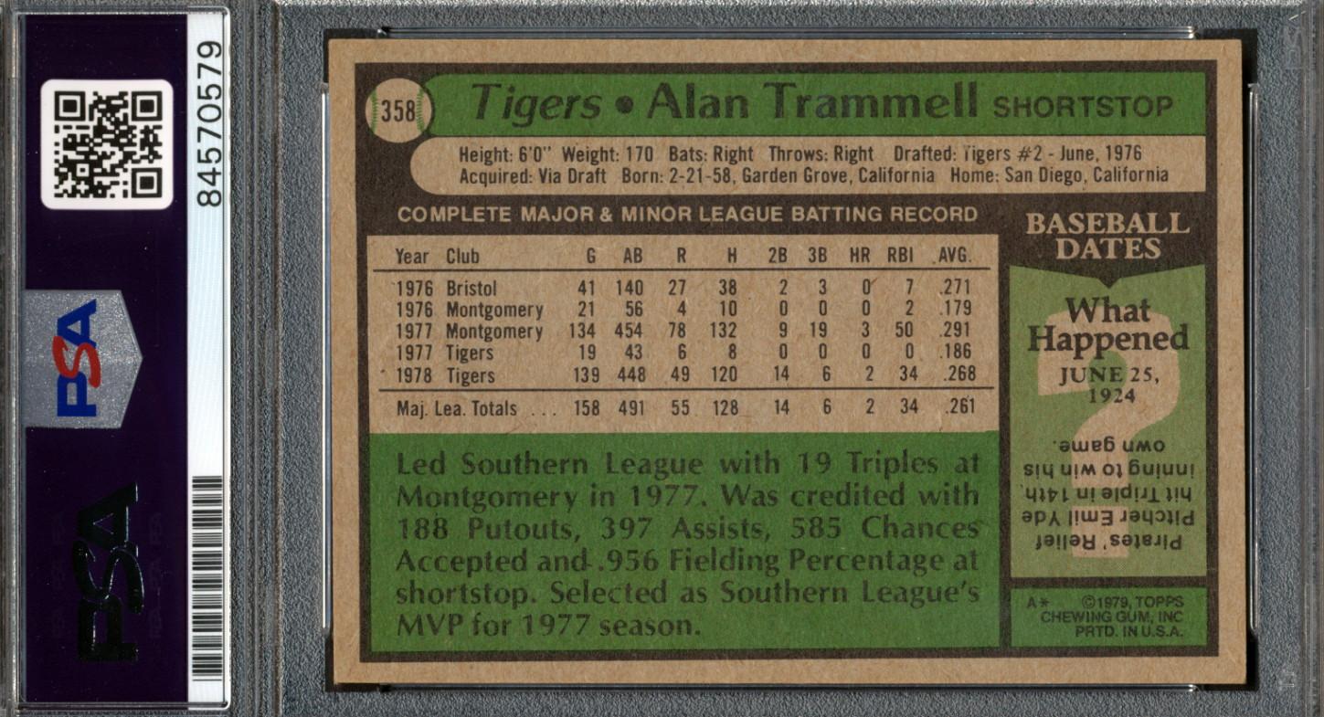Alan Trammell Signed 1979 Topps #358 (PSA)
