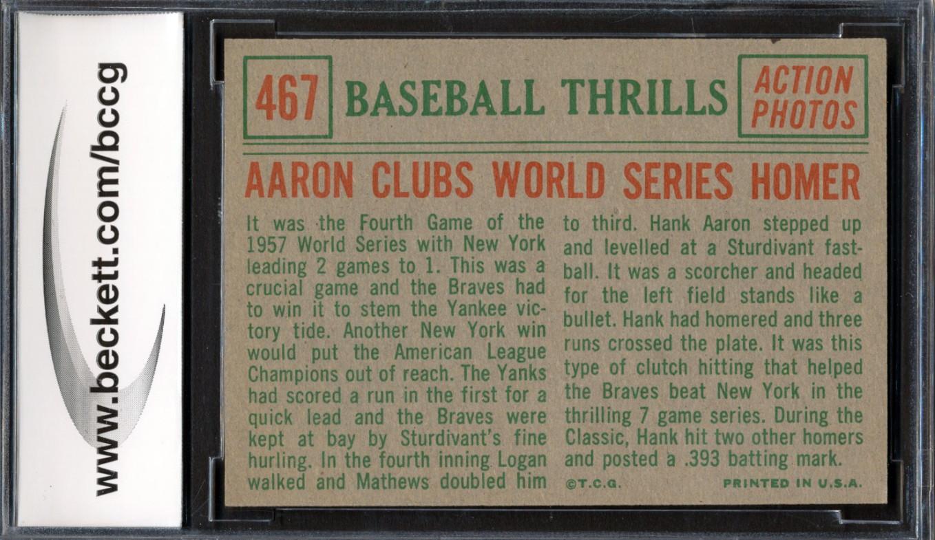 Hank Aaron 1959 Topps #467 BT/WS Homer (BCCG 8)