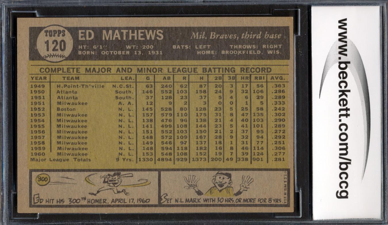 Eddie Mathews 1961 Topps #120 (BCCG 9)
