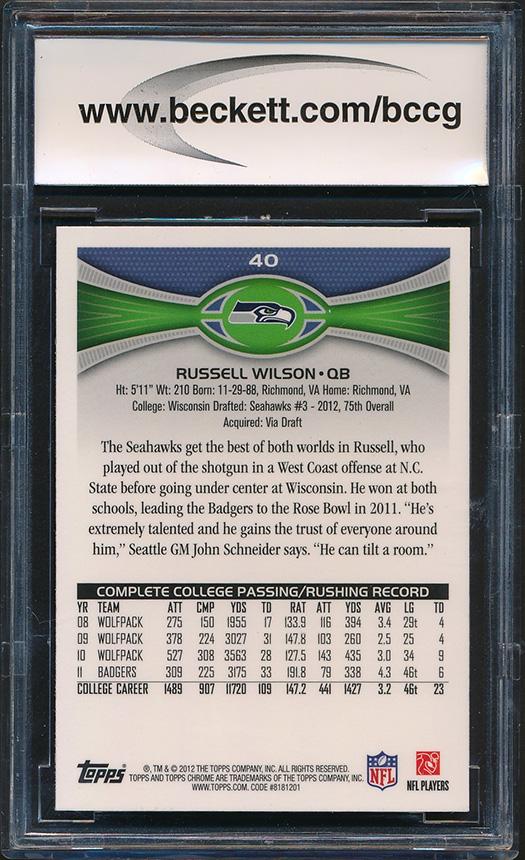 Russell Wilson 2012 Topps Chrome #40A (BCCG 10)