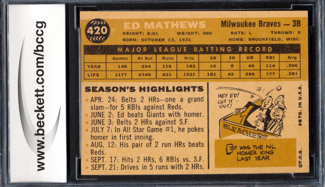 Eddie Mathews 1960 Topps #420A (BCCG 8)