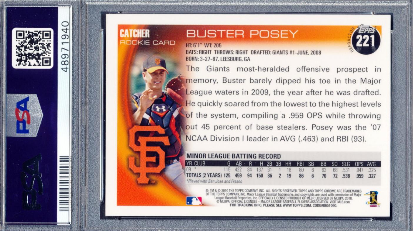 Buster Posey 2010 Topps Chrome Wrapper Redemption Refractors #221 (PSA 9)