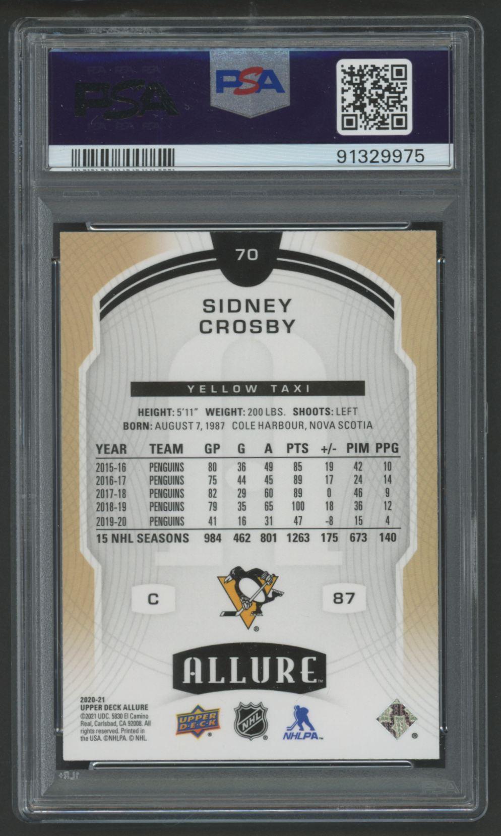 Sidney Crosby 2020-21 Upper Deck Allure Yellow Taxi #70 (PSA 10)