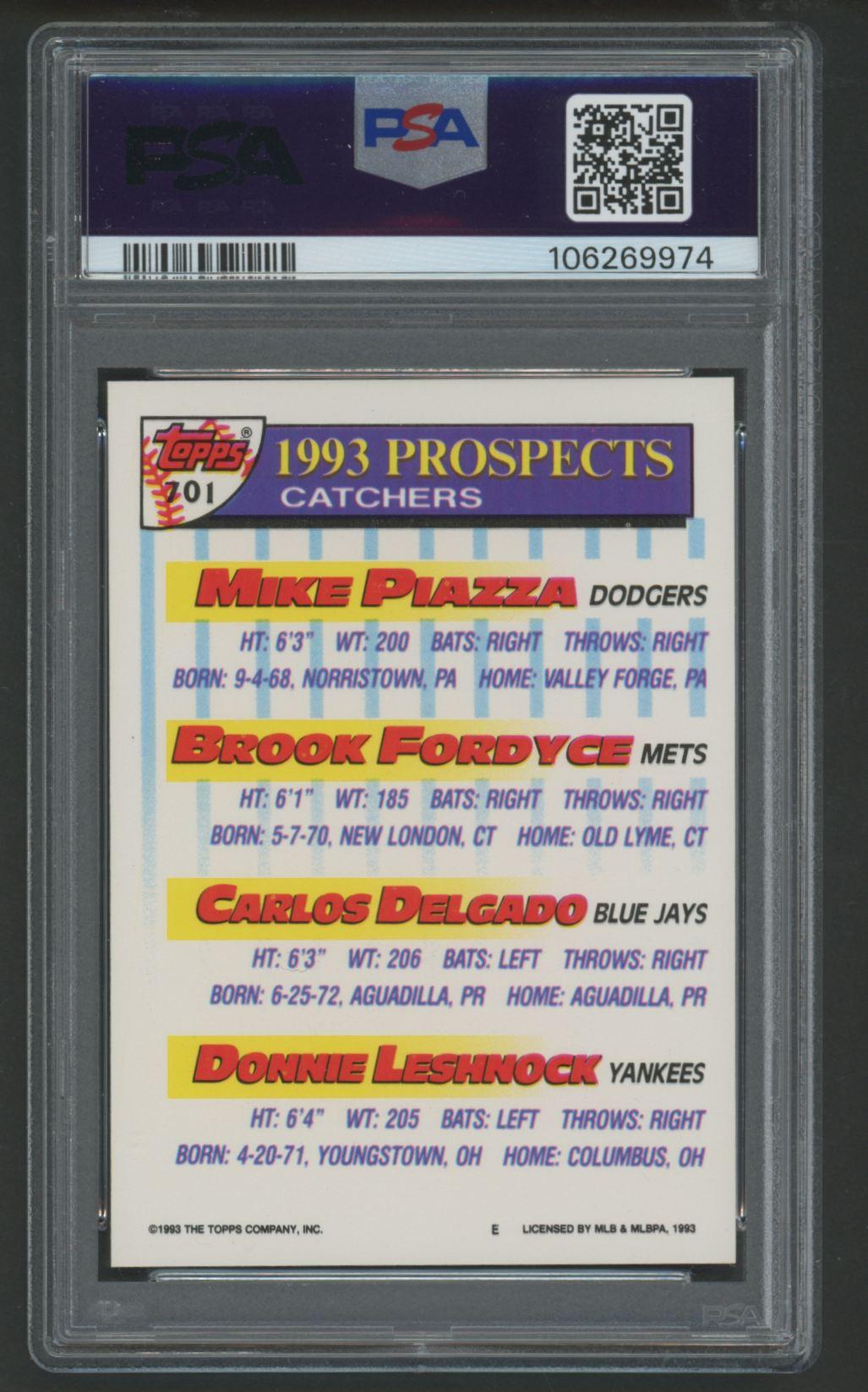 1993 Topps #701 Mike Piazza / Brook Fordyce / Carlos Delgado / Donnie Leshnock (PSA 10)
