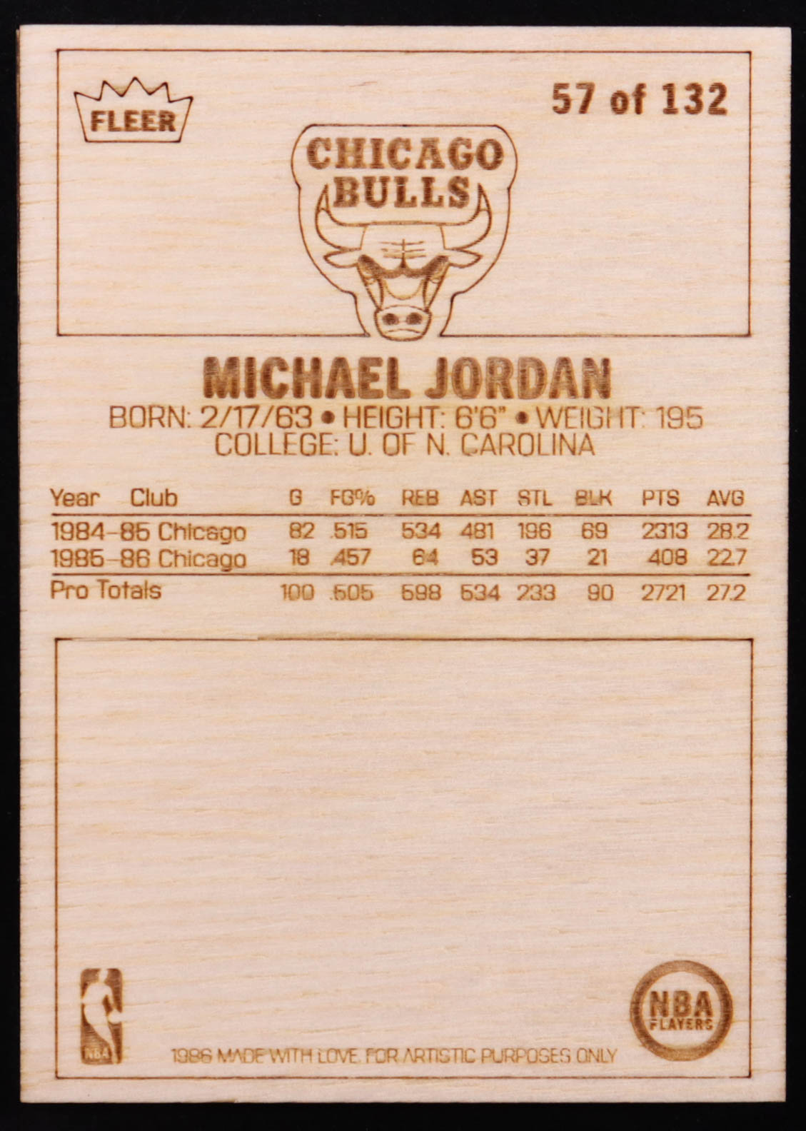 Michael Jordan Custom Wood Art Trading Card