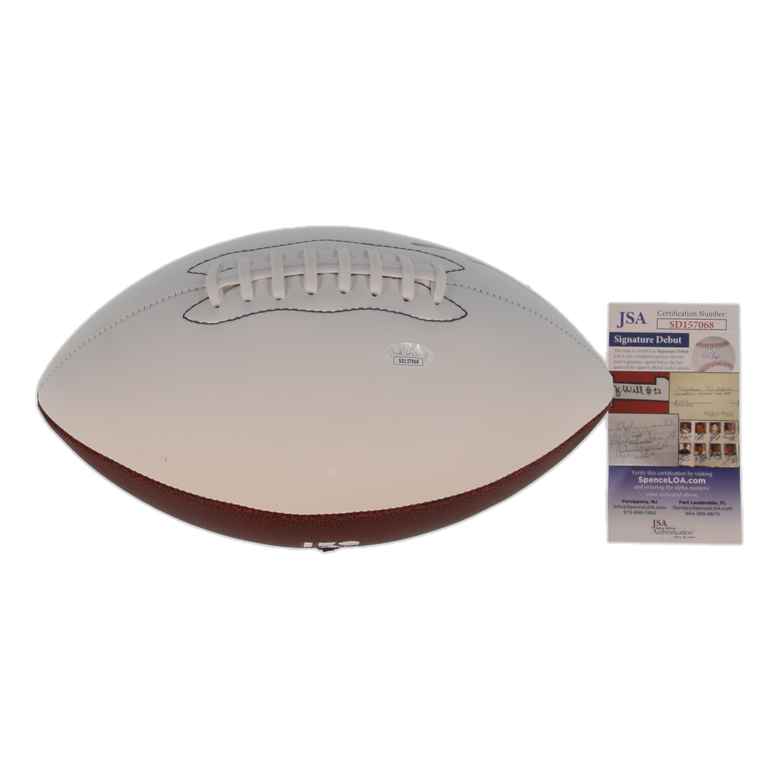 The autograph(s) includes an official James Spence Authentication (JSA) "Signature Debut" hologram and COA. "Signature Debut" is the autographed memorabilia equivalent to a rookie card. The JSA definition of a "Signature Debut" is as follows: "Any item that is autographed and received by JSA prior to the last game of the signer's official rookie season.