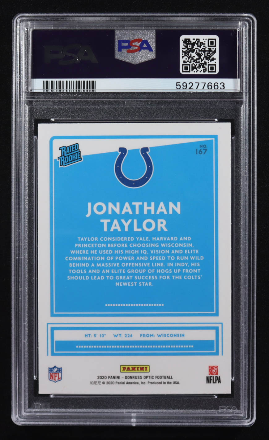 Jonathan Taylor 2020 Donruss Optic #167 RC (PSA 10)