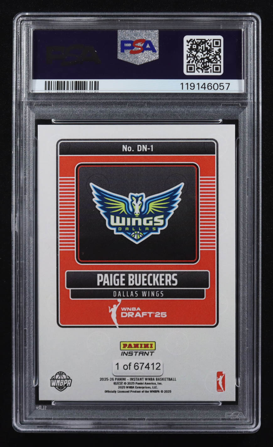 Paige Bueckers 2025 Panini Instant WNBA Draft Night #DN1 RC (PSA 10)