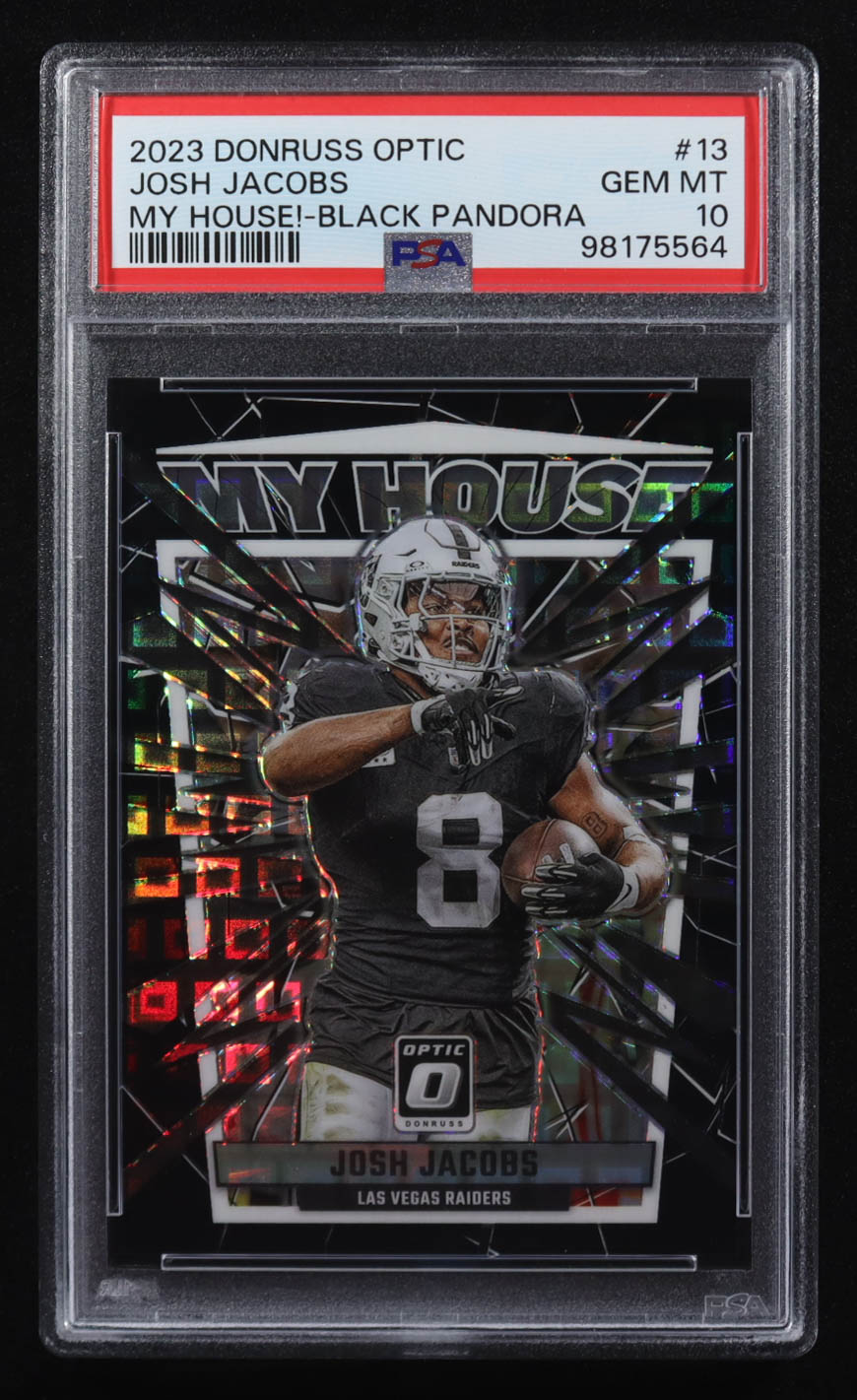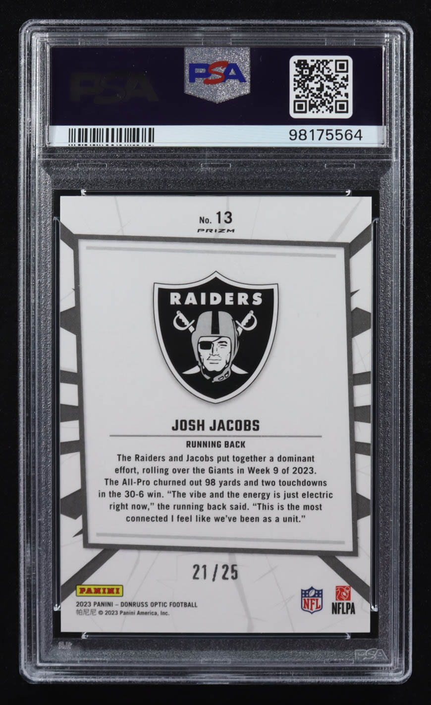 Josh Jacobs 2023 Donruss Optic My House! Black Pandora #13 #21/25 (PSA 10)