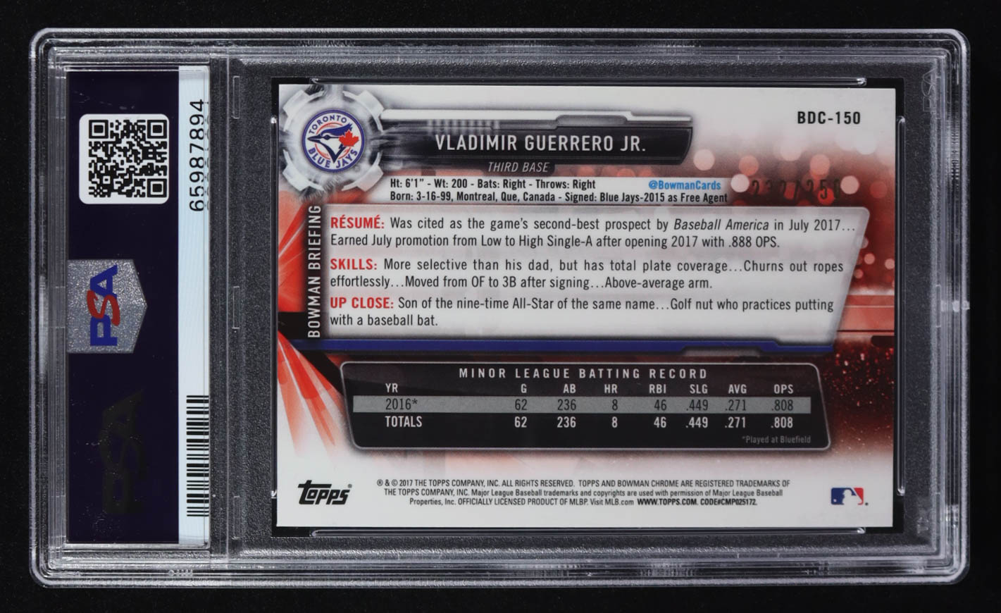 Vladimir Guerrero Jr. 2017 Bowman Chrome Draft Purple Refractors #BDC150 #232/250 (PSA 9)