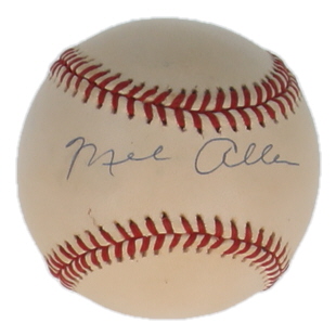Rawlings Official American League Baseball. Hand-signed by Mel Allen (D. 1996, HOF). Please note, the baseball is naturally toned and stained.