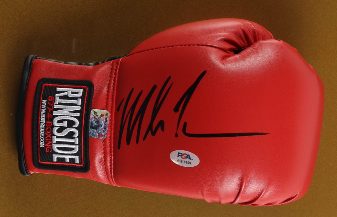 Custom frame measures approximately 17" x 30" in size. Everlast boxing glove is hand-signed by Mike Tyson (HOF). Display also features a "Tyson vs. Spinks" fight poster.