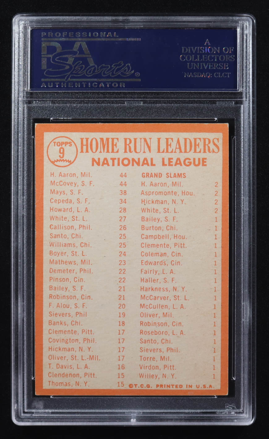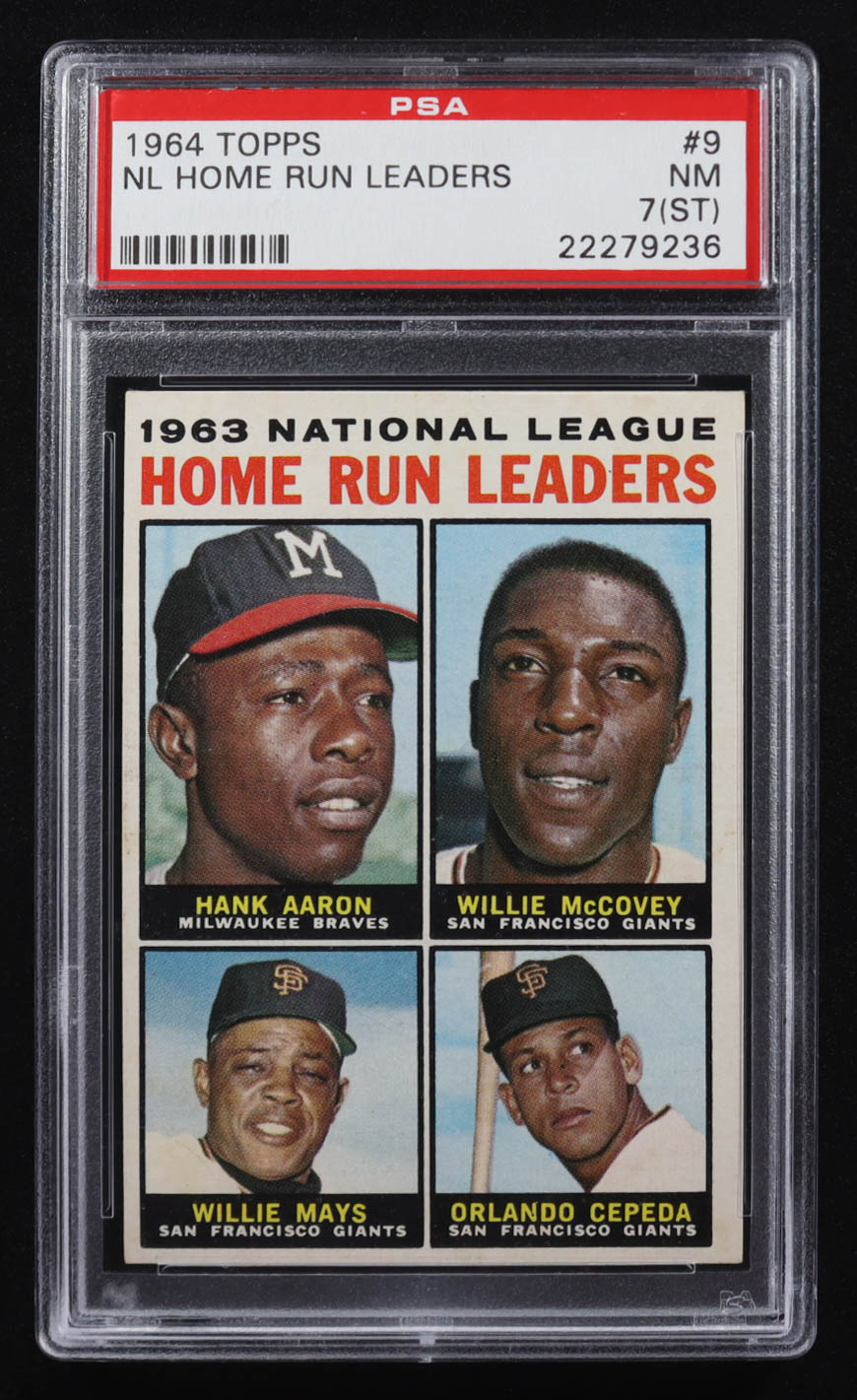 1964 Topps #9 NL Home Run Leaders Hank Aaron / Willie McCovey / Willie Mays / Orlando Cepeda (PSA 7) (ST)