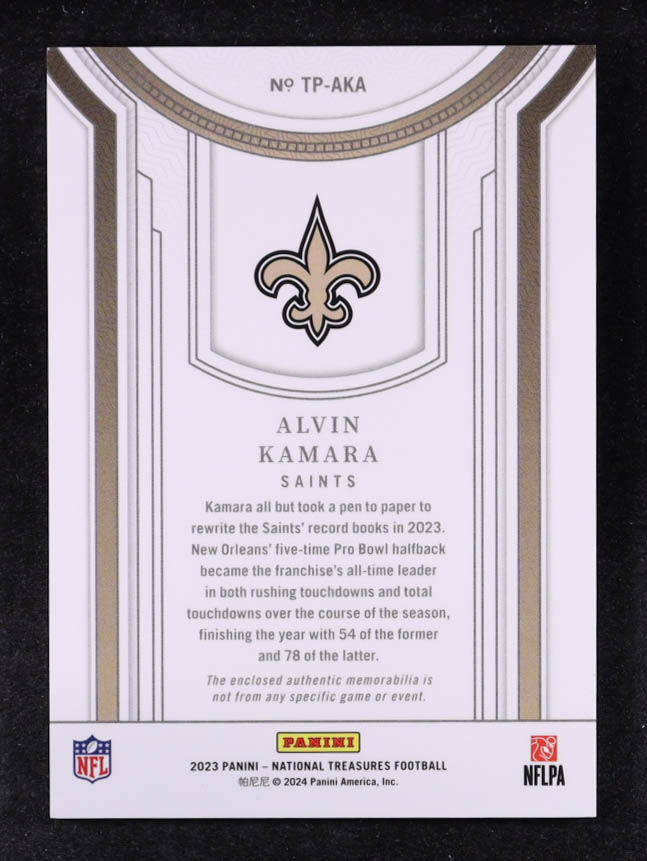 Alvin Kamara 2023 Panini National Treasures Treasured Patches #17 #46/49