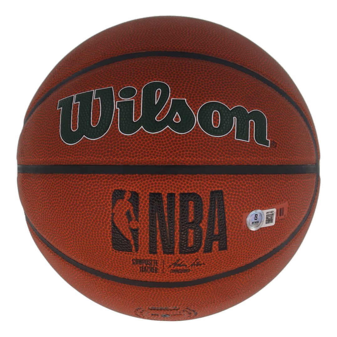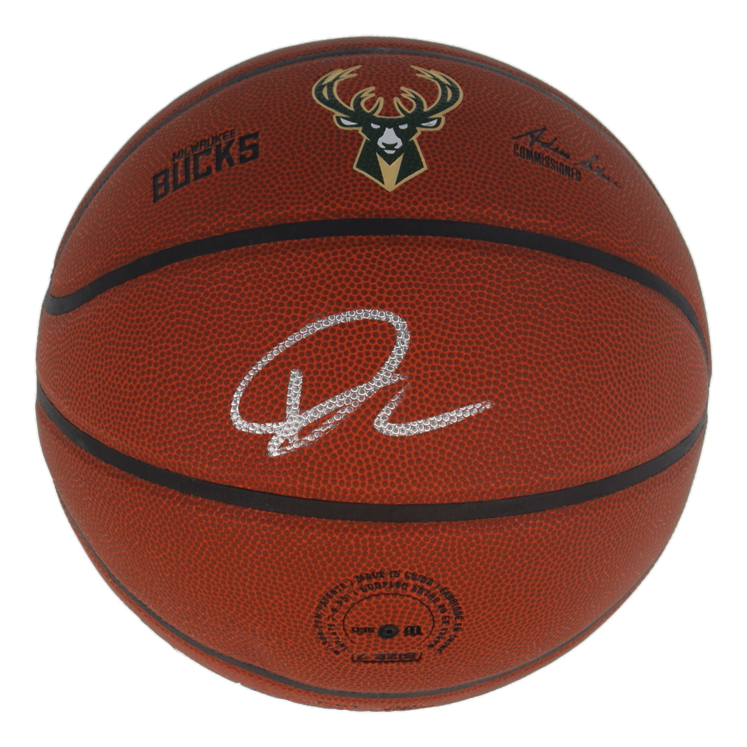Wilson Milwaukee Bucks Logo NBA Basketball. Hand-signed by Giannis Antetokounmpo.