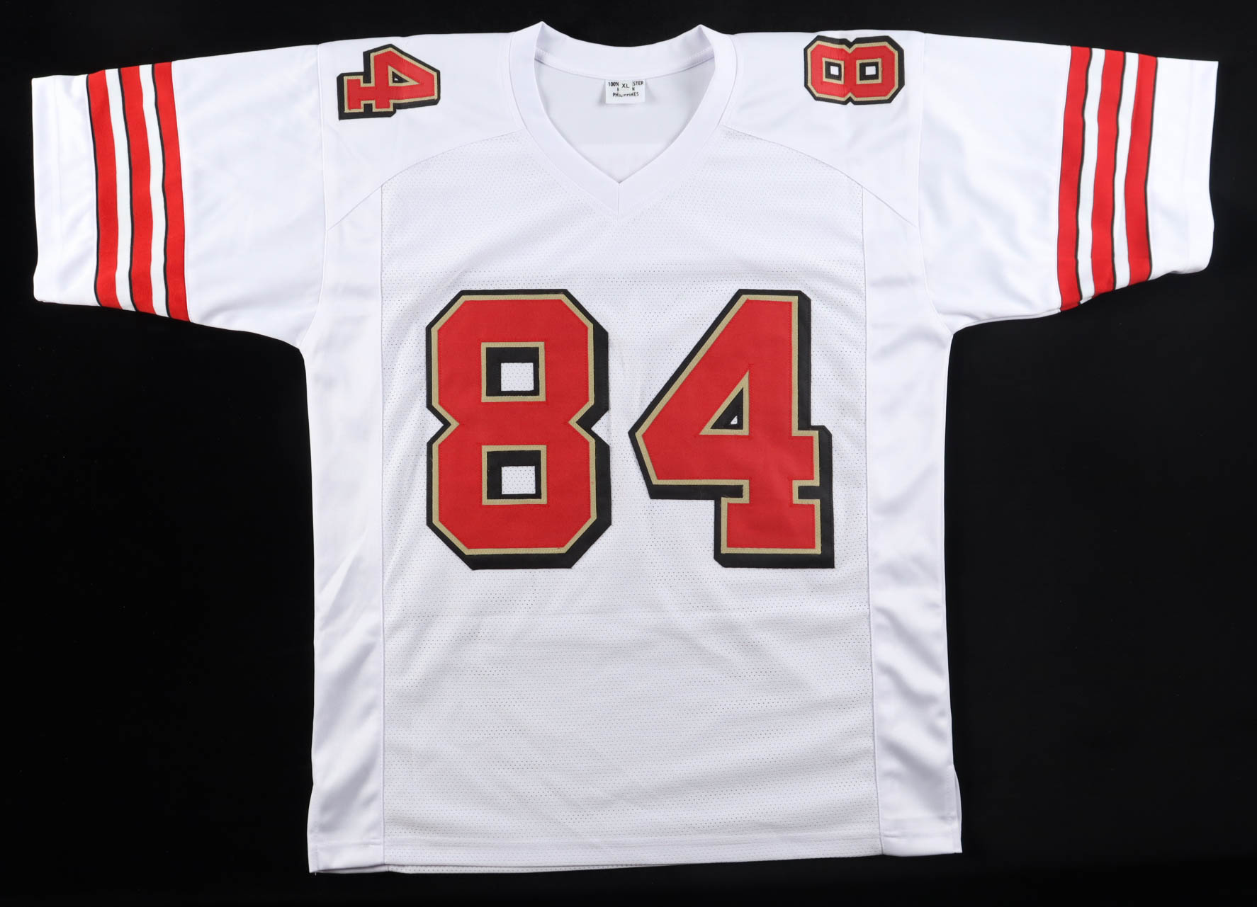 Custom jersey. Everything is sewn on, size XL. Hand-signed by Brent Jones.