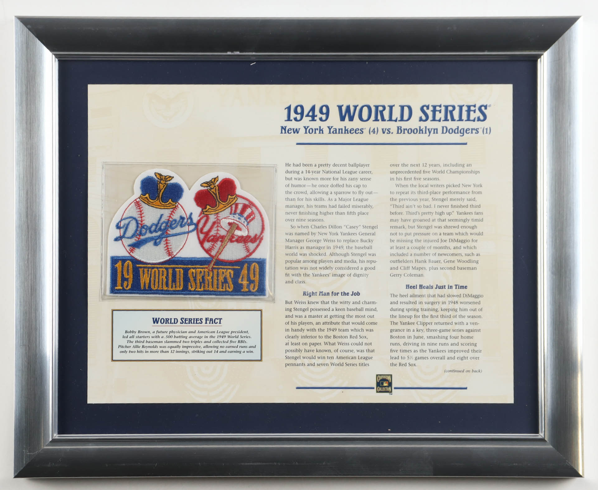 1949 World Series Custom Framed Article Display with Retro Logo Patch