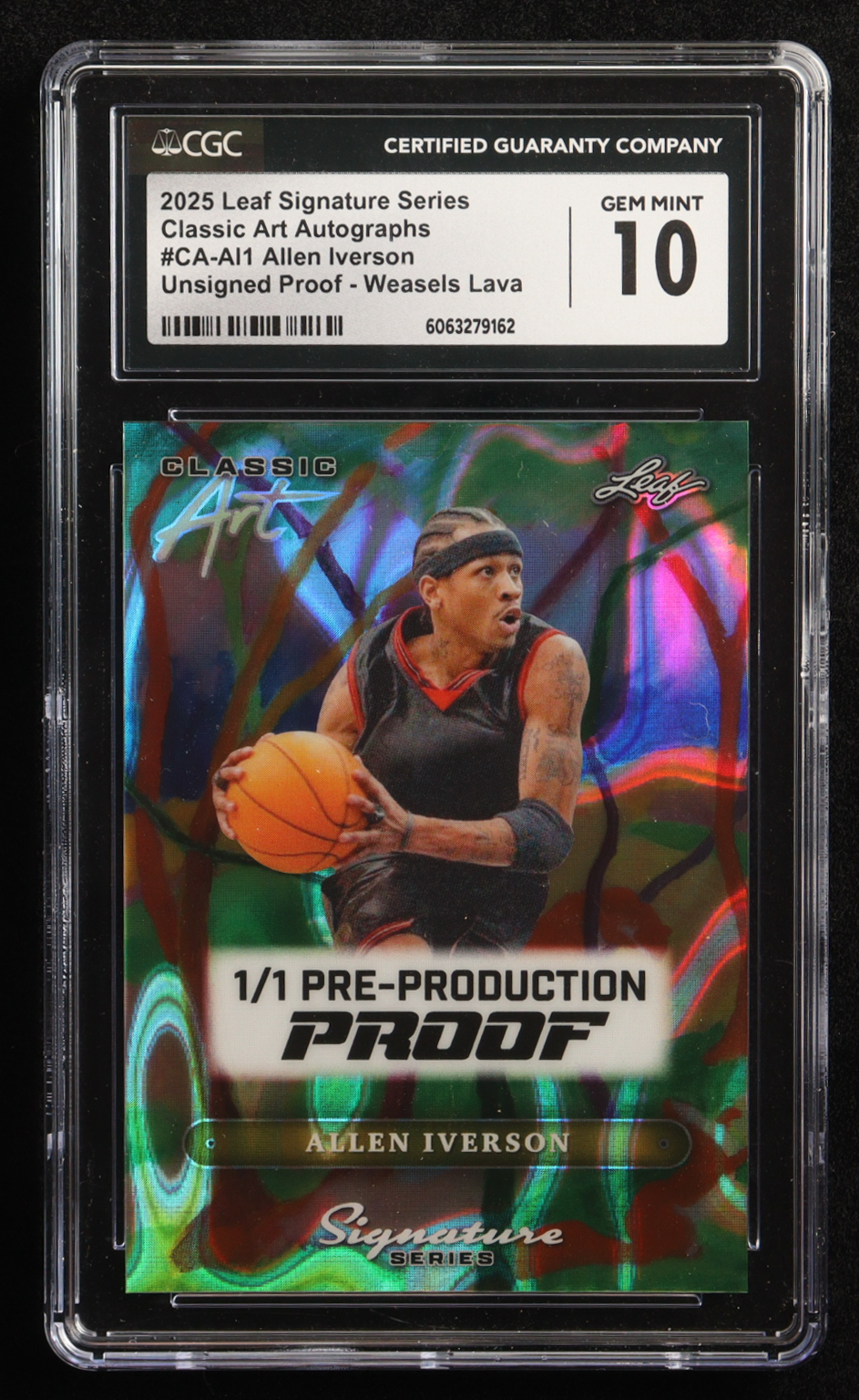 Allen Iverson 2025 Leaf Signature Series Unsigned Proof Weasels Lava Pre-Production Proof Classic Art Autographs #CAAI1 #1/1 (CGC 10)