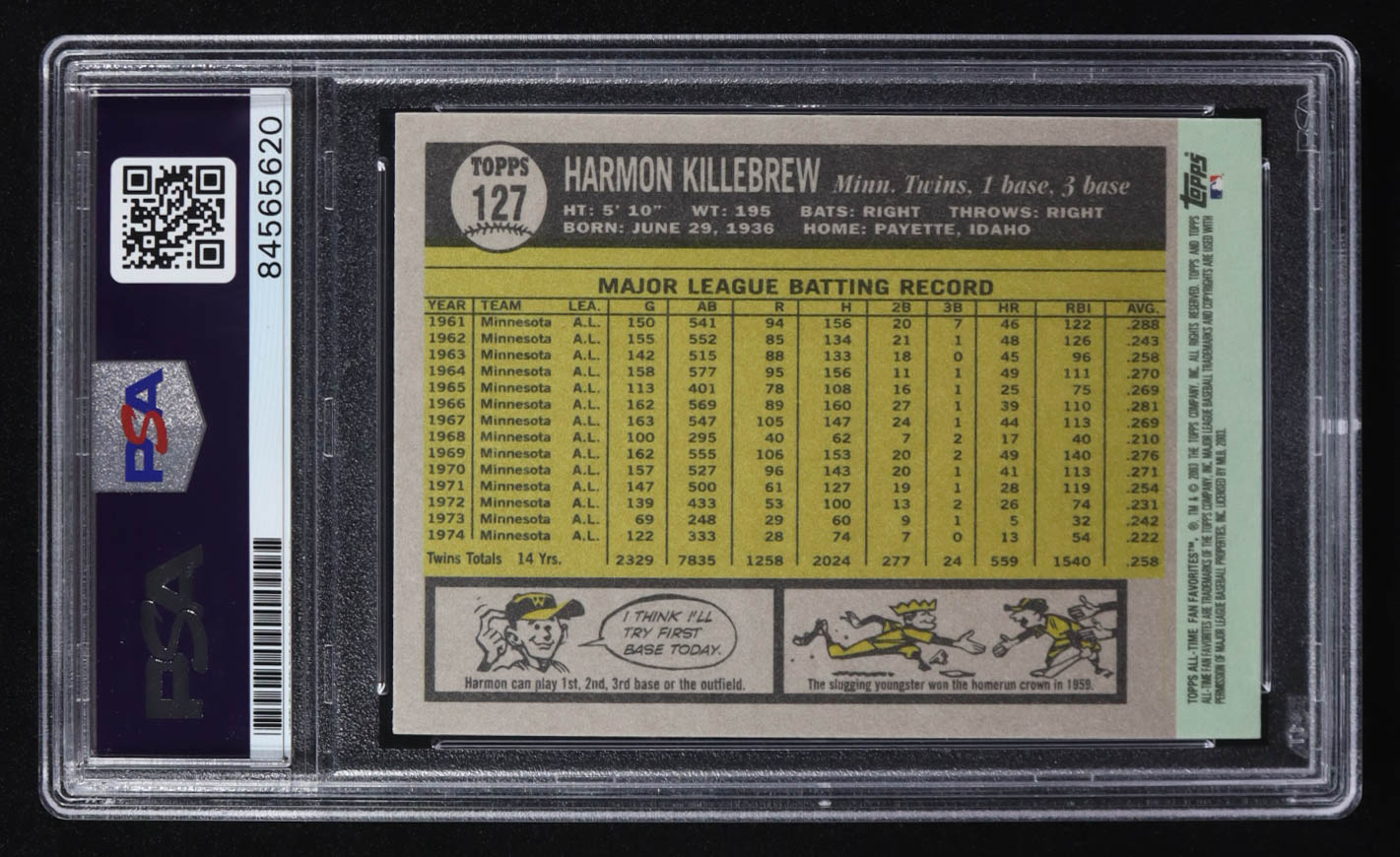Harmon Killebrew Signed 2003 Topps All-Time Fan Favorites #127 (PSA Encapsulated)
