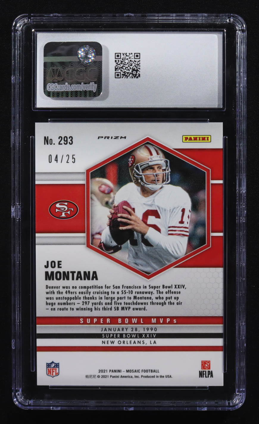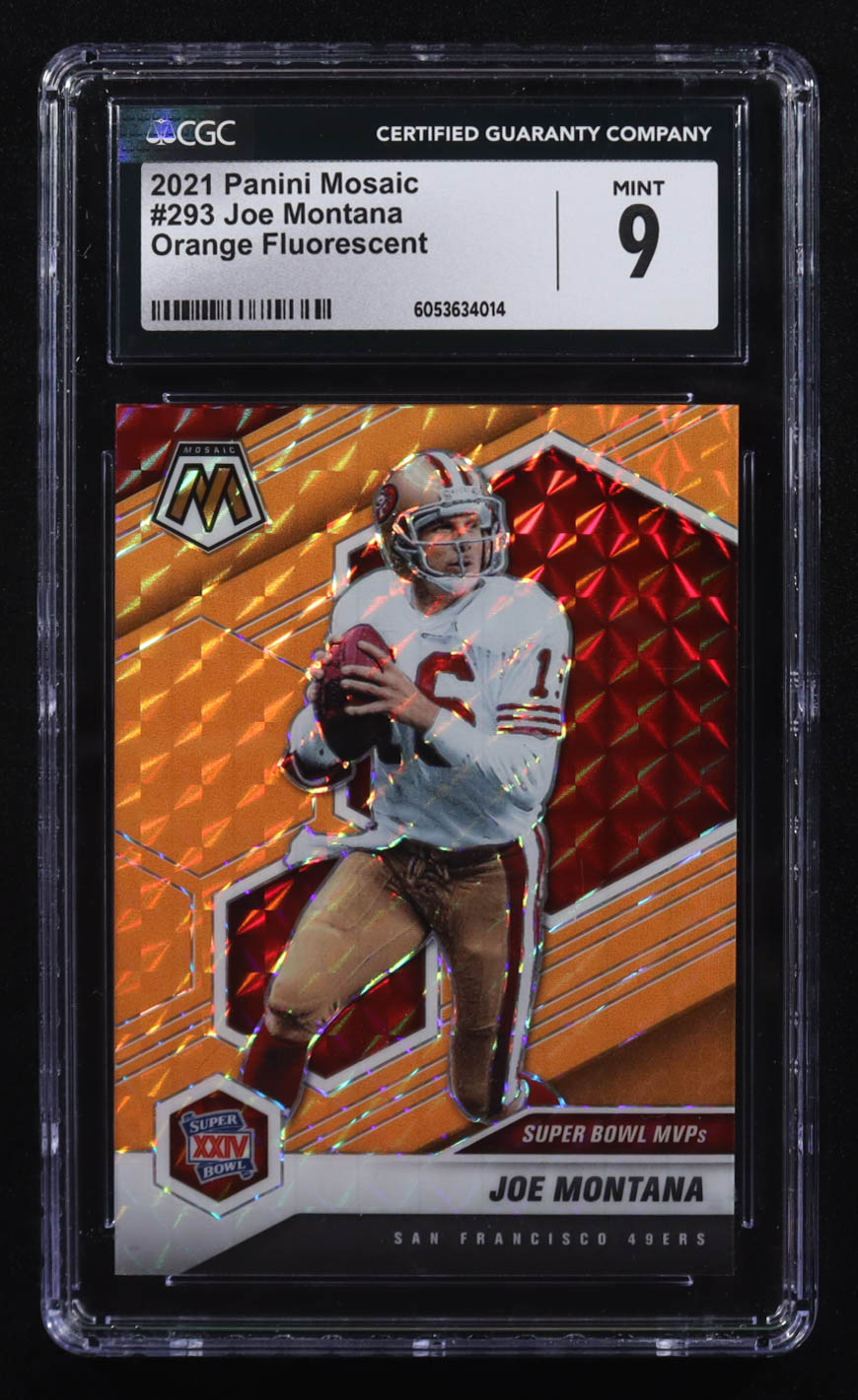 Joe Montana 2021 Panini Mosaic Mosaic Orange Fluorescent #293 #04/25 (CGC 9)