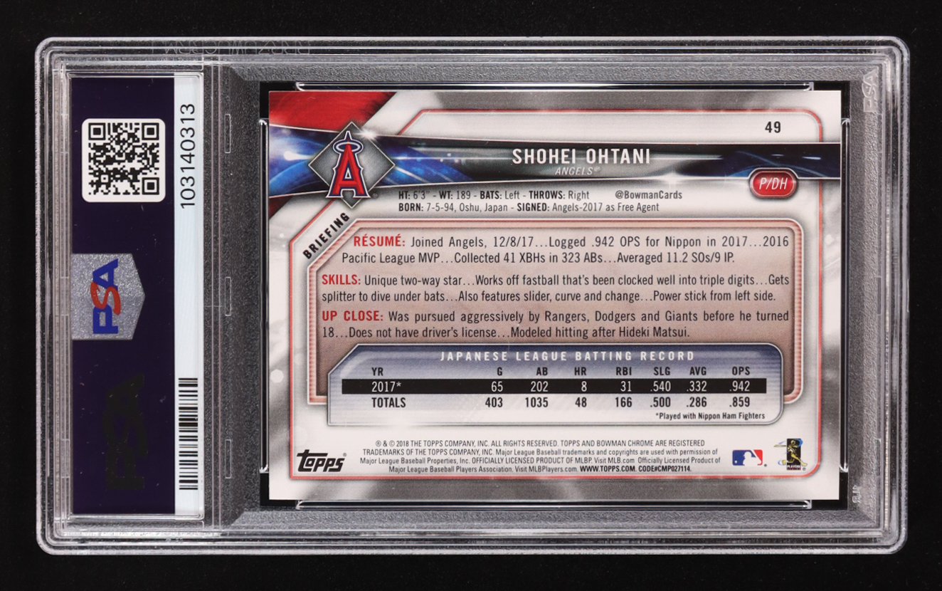 Shohei Ohtani 2018 Bowman #49 RC (PSA 10)
